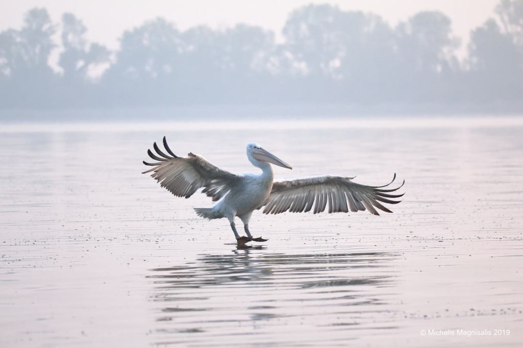 Ταξιδέψαμε πριν ακόμα ξημερώσει, για να είμαστε με το πρώτο φως στην λίμνη Κερκίνη, στα βόρεια του νομού Σερρών, έναν από τους υδροβιότοπους της Ελλάδας, που ο αργυροπελεκάνος ( pelecanus crispus), έχει επιλέξει για την αναπαραγωγή του. Κατεβαίνοντας το σκοτεινό μονοπάτι και με ένα πολύ γρήγορο «καλημέρα», βρεθήκαμε μέσα στην πλάβα του Νίκου. Λίγα λεπτά αργότερα, γλυστράμε στην ήρεμη υδάτινη επιφάνεια και η πρωινή ομίχλη μας δίνει μια ιδιαίτερη κινηματογραφική ατμόσφαιρα.