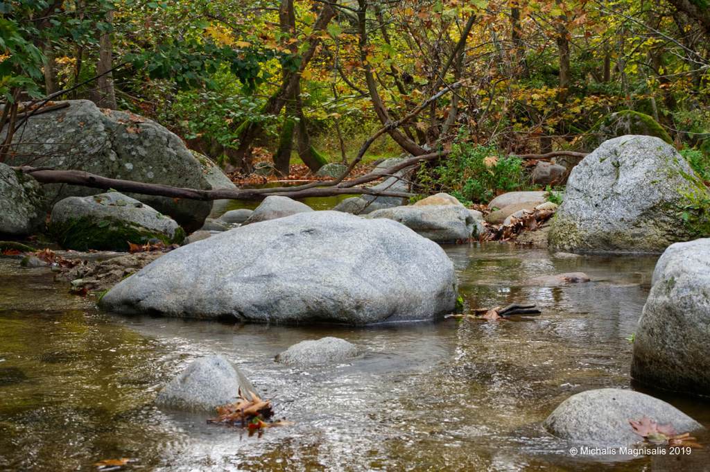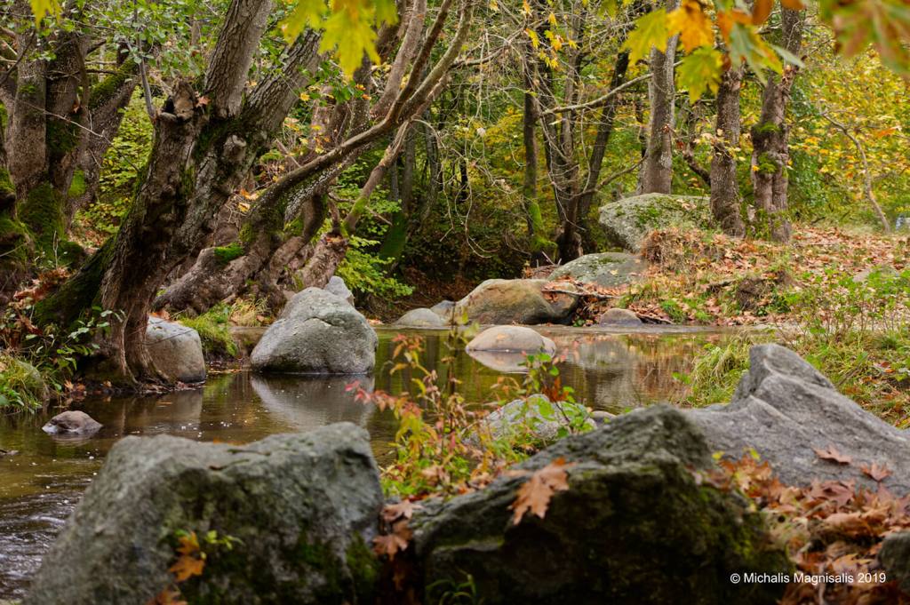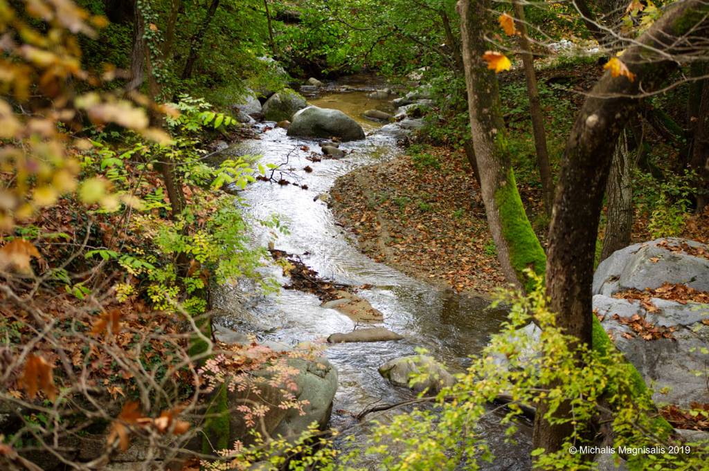 Συνεχίζουμε την πορεία μας, ανακαλύπτοντας τις φυσικές ομορφιές μιας μάλλον άγνωστης κοιλάδας. Είναι προχωρημένο φθινόπωρο και το πράσινο έχει αρχίσει να ανακατεύεται με το κιτρινοκόκκινο. Στην κατηφορική διαδρομή, το νερό αλλάζει επίπεδο σχηματίζοντας μικρούς καταρράκτες.