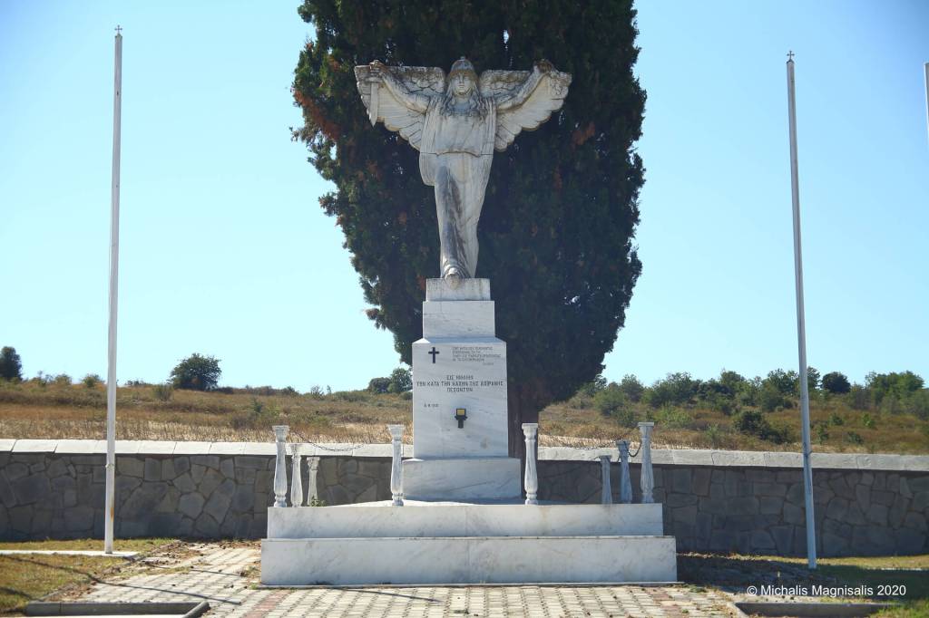Στο τέλος του κεντρικού διαδρόμου που διαχωρίζει τα δύο τμήματα υπάρχει το μνημείο της «Νίκης», το οποίο σχεδιάστηκε από τον γλύπτη Αντώνιο Σώχο (1888-1975). Απεικονίζει μια φτερωτή γυναικεία μορφή, η οποία στο ένα χέρι κρατάει ένα μικρό ξίφος και στο άλλο ένα δάφνινο στεφάνι, ενώ φοράει ελληνικό κράνος του Α’ Παγκοσμίου Πολέμου. Η μορφή στέκεται ως φύλακας των πεσόντων στρατιωτών αλλά και ως ακοίμητος φρουρός των παραμεθόριων περιοχών. Στη βάση του αγάλματος υπάρχει χαραγμένη επιγραφή με επίγραμμα του εθνικού ποιητή Διονύσιου Σολωμού: «είνε αυτοί που πολεμώντας εσκεπάσανε τη γη, πάνου εις τ’ άρματα βροντώντας με το ελεύθερο κορμί».