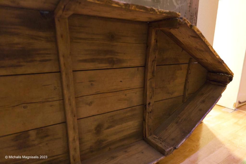 «Όσο φαρδύ τορνεύει μάστορης που κατέχει την τέχνη του άριστα τον πάτο καραβιού για φόρτωμα τόσο φαρδιά κι ο Οδυσσέας την έφτιαξε την πλάβα, στεριώνοντας τα ίκρια με πολλά στραβόξυλα ώσπου απλώνοντας μακριές σανίδες τέλειωσε την κουβέρτα».