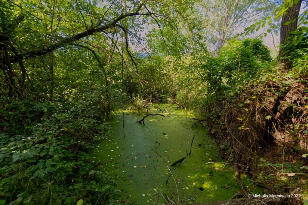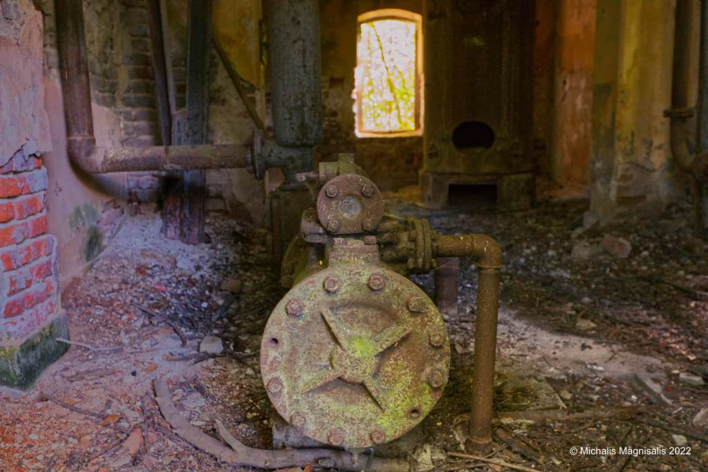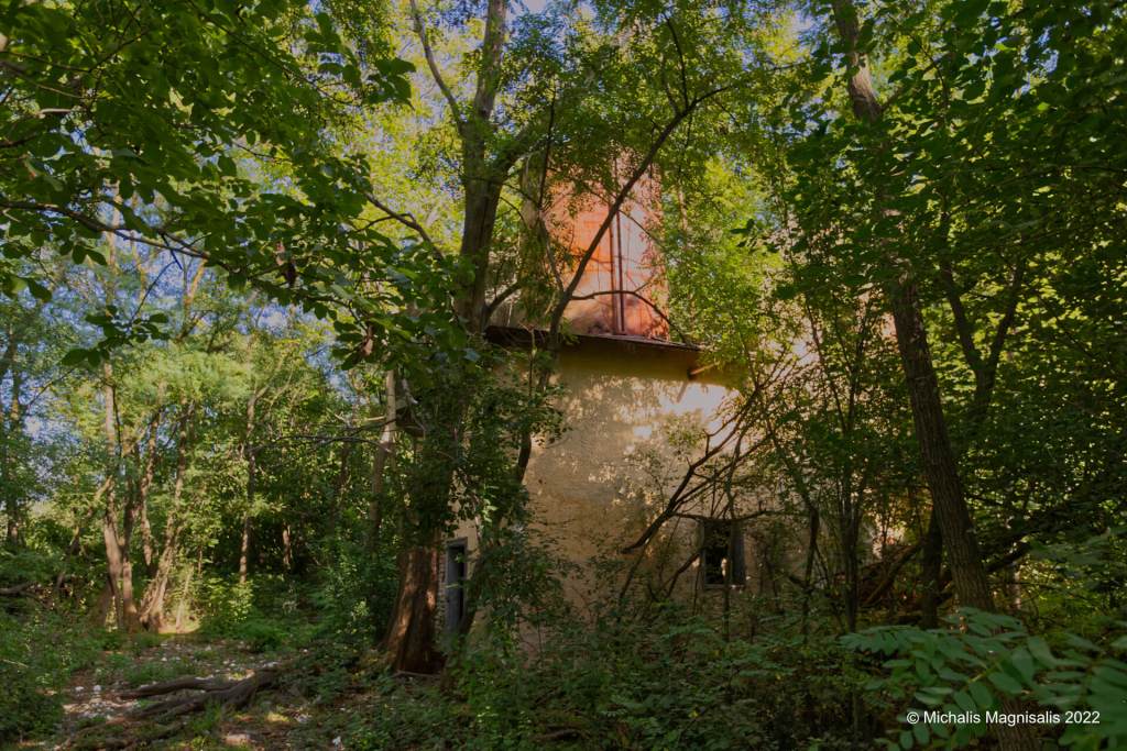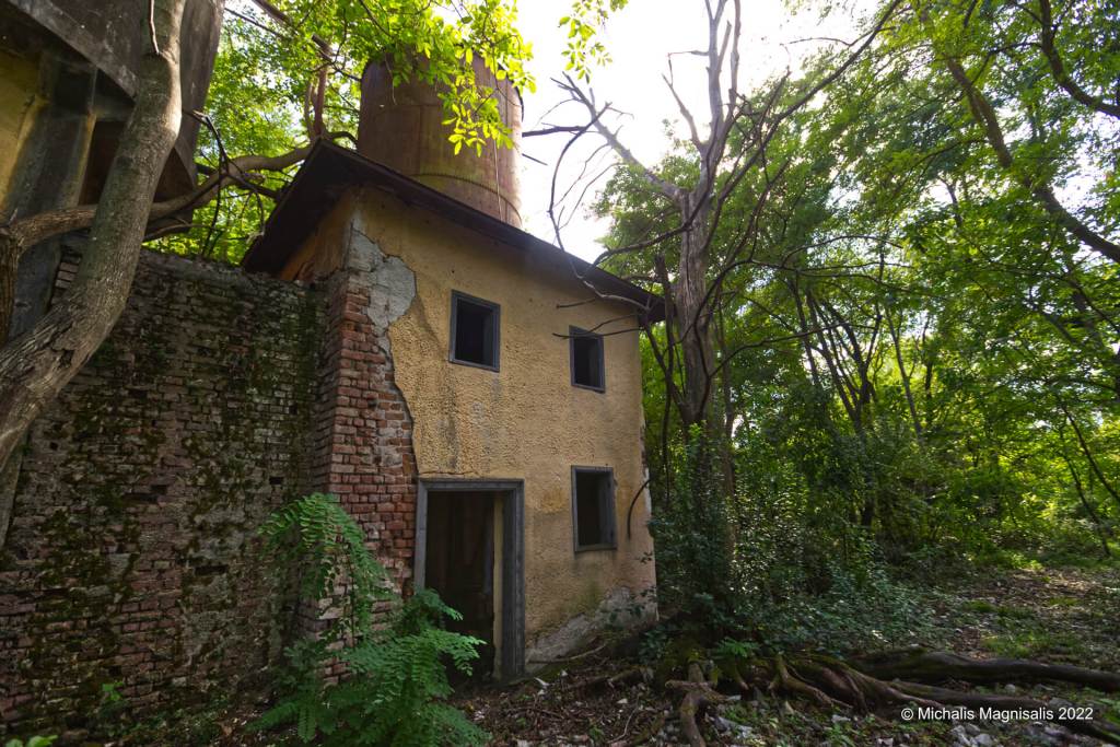 Ξεχασμένη από τον χρόνο. Ολόκληρη η παλιά σιδηροδρομική γραμμή και οι γύρω εγκαταστάσεις έχουν κρυφτεί μέσα στην πυκνή βλάστηση. Από το κτίριο του σταθμού της Βυρώνειας, ένα σταθμό πριν από το Νέο Πετρίτσι Σερρών, ακολουθούμε το μονοπάτι. Μετά από 10 λεπτά πεζοπορείας βρισκόμαστε μπροστά σε ένα εξαιρετικό δείγμα βιομηχανικής αρχιτεκτονικής. Η «Μπόμπα», το παλιό αντλιοστάσιο στέκεται προστατευμένη μέσα στη φυσική χρονοκάψουλα.