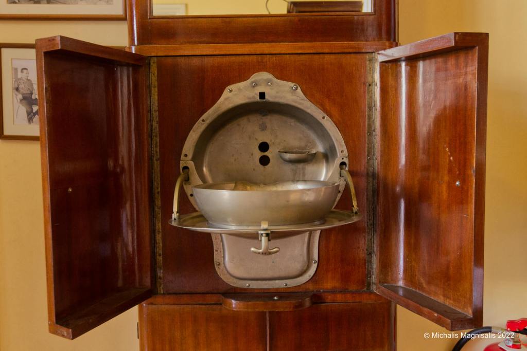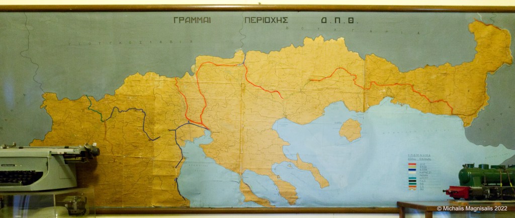 Στην κεντρική αίθουσα ξεχωρίζουν οι περίτεχνες μαρκετερί , οι οποίες προέρχονται από βαγόνι του φημισμένου Orient Express. Πρόκειται για κομμένα και συναρμολογημένα κομμάτια ξύλου, που χρησίμευαν για τη διακόσμηση επιφανειών. Εξίσου ενδιαφέρον παρουσιάζει και ο νιπτήρας του διαμερίσματος του Ελληνικού βασιλικού βαγονιού, που χρησιμοποιούσαν οι βασιλείς της Ελλάδος κατά το παρελθόν.