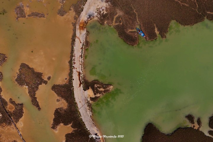 Η μορφολογία του εδάφους στον υγρότοπο της Χαλάστρας όσο πλησιάζουμε προς το Δέλτα του Αξιού, μοιάζει με εργόχειρο όταν κοιτάμε από ψηλά.