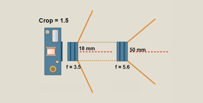 Mια crop μηχανή λόγω των τεχνικών χαρακτηριστικών της, προκαλεί μεταβολή της εστιακής απόστασης του φακού κατά μιάμιση φορά (1.5x). Έτσι στην πράξη έχουμε έναν zoom φακό που ξεκινάει από 18Χ1.5=27mm (ευρυγώνιος), έως και 50Χ1.5=75mm (μικρός τηλεφακός).